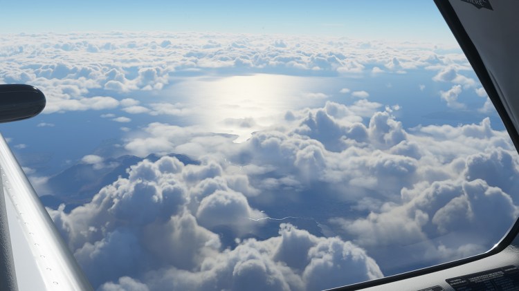 With some three and a bit hours to run before I’d need to be on the ball, I took the opportunity to fiddle with the huge amount of features that the TBM offered. Drilling down into menus on the Garmin avionics suite and enjoying the easy handling of this powerful and smooth single turbo prop. The integrated auto pilot and full navigation integration took the hard work out of a long leg over ocean, meaning I could enjoy the views of the clouds out to the horizon and only think about how miserable the weather would be under them. How lucky to be above the clouds in the glorious sunshine.