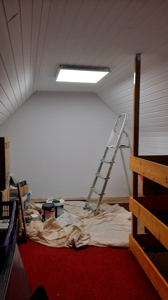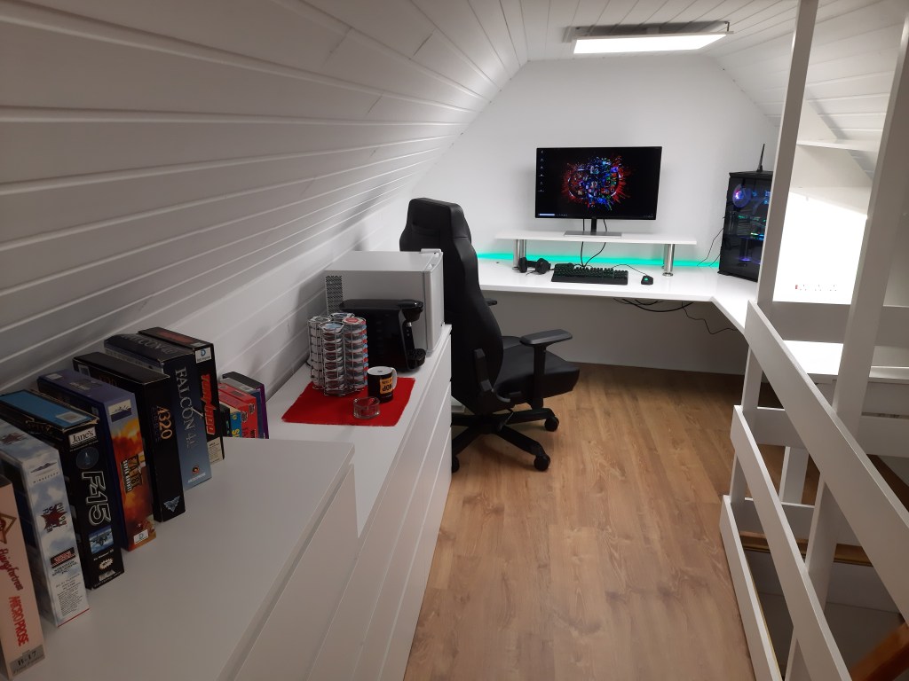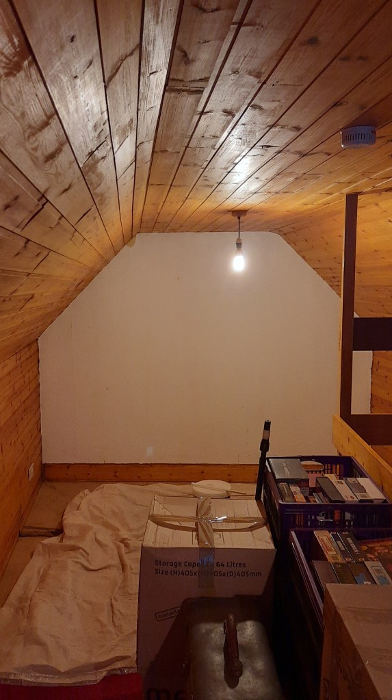 So I’ll leave you with some photos of turning my attic, from a land that the 70’s forgot into a modern gamin studio and edit suite.